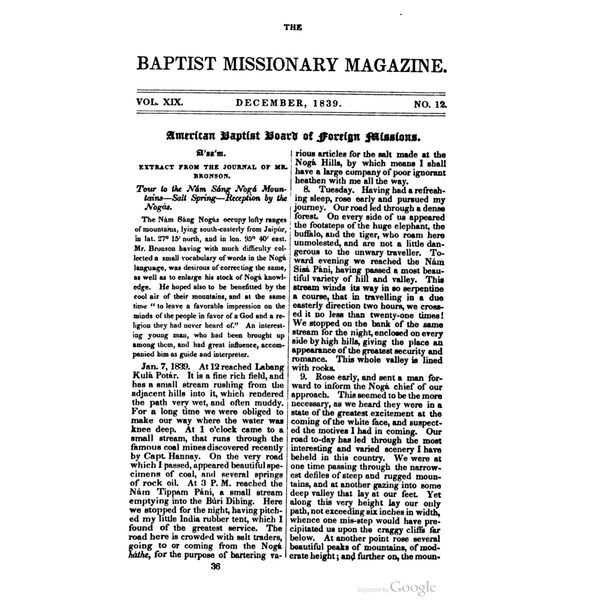 Topics: Accounts on the Nocte tribe from the journal and letters of American Baptist missionaries.