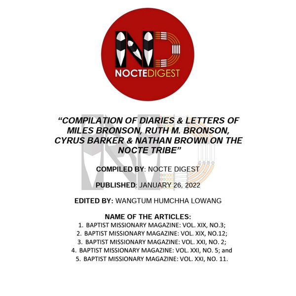 Message: Nocte Digest is forever grateful to Prof. Stephen Morey of La Trobe University, Australia; Dr. Rikker Dockum of Swarthmore College, USA; and Luke Lindemann, a postdoctoral researcher at Yale University, USA, for acquiring the first digitalized copy of Miles Bronson’s book titled: “A spelling book and vocabulary in Assamese, Singpho and Naga”, from the library of Yale University, Connecticut, USA. Read full story here.